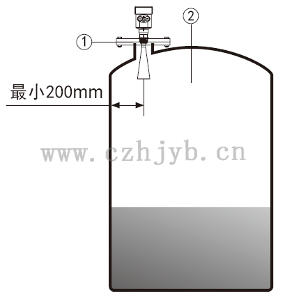 Ø 儀表不能安裝在拱形或圓形罐頂中間。除了會產生間接回波還會受到多次回波的影響。多次回波可能比真正回波的信號閥值還大,因為通過頂部可集中多個回波。所以不能安裝在中心位置。